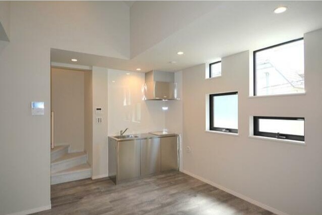 | 設備・条件 | 最上階の物件 , ペット相談 , 2人入居可 , デザイナーズ , 事務所可 , 保証人不要 , システムキッチン , IHコンロ , コンロ二口以上 , バス・トイレ別 , シャワートイレ , エアコン , 光ファイバー , TVドアホン , 室内洗濯機置場 , フローリング , ロフト付き , 駐輪場あり , 都市ガス | ||