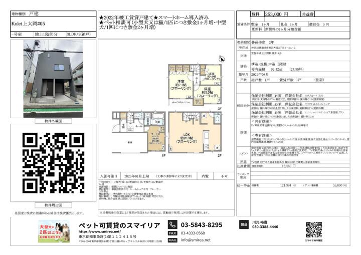 | 備考 | スマートホーム導入済み 駐車場付き オールフローリング 全室エアコン トイレ2ヶ所 浄水器 パウダールーム 独立洗面化粧台 クローゼット 収納スペース シューズボックス ペアガラス ディンプルキー ダブルロックドア EV車用充電設備 退去時ルームクリーニング費用負担あり ペット飼育時:敷金の積み増しあり | ||