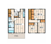 | 備考 | テラスハウス 専用庭 クローゼット 収納スペース シューズボックス パウダールーム 独立洗面化粧台 駐輪場:譲り合って利用のこと ペット飼育時:敷金2ヵ月追加 | ||
