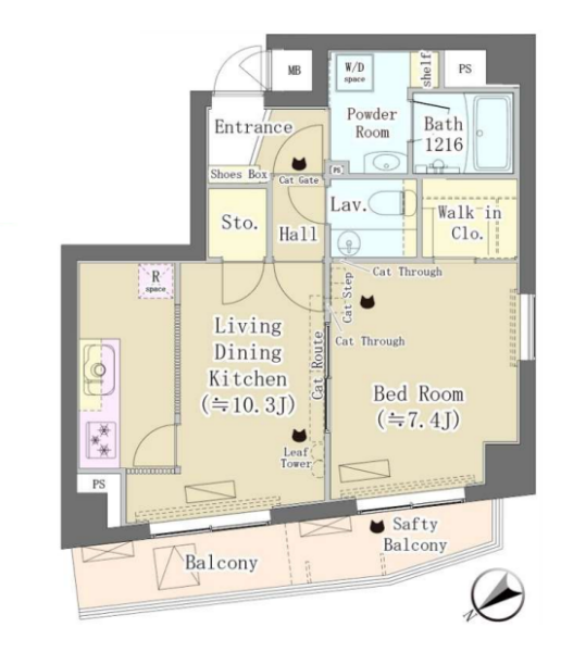 | 備考 | 猫共生型マンション キャットステップ キャットゲート キャットスルー オールフローリング パウダールーム 独立洗面化粧台 24時間換気システム クローゼット 収納スペース シューズボックス ディンプルキー 敷地内ごみ置場 ディンプルキー ダブルロック 24時間問い合わせ窓口 退去時ルームクリーニング費用負担あり 口座振替事務手数料:220円/月 ペット飼育時:敷金1ヶ月追加 | ||