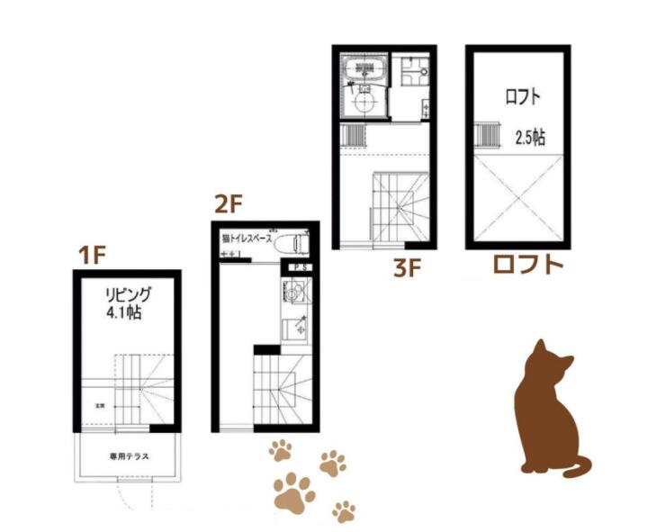 | 備考 | 猫共生型住宅 メゾネットタイプ インターネット無料 オールフローリング キャットウォーク 猫専用扉 エアコン2台 冷蔵庫 収納スペース 敷地内ごみ置場 安心サポート要加入:660円(税込)/月 短期解約違約金あり 退去時ルームクリーニング費用:49,500円(税込) ペット飼育時:敷金積み増しなし | ||