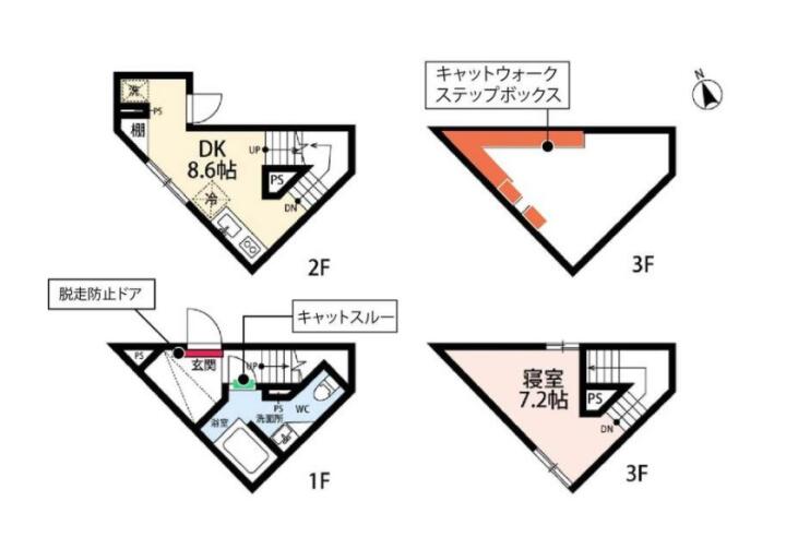 | 備考 | フリーレント1ヶ月 猫共生型マンション キャットウォーク&ステップボックス キャットスルードア 脱走防止ドア メゾネットタイプ オールフローリング パウダールーム 収納スペース シューズボックス ディンプルキー 敷地内ゴミ置場 ガス保証料:10,000円 退去時ルームクリーニング費用負担あり ※猫飼育時は避妊去勢手術が必要となります。 | ||