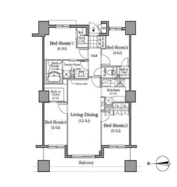 コンシェルジュサービス付きのペット可賃貸マンションです。広々とした4LDKタイプのお部屋になります。