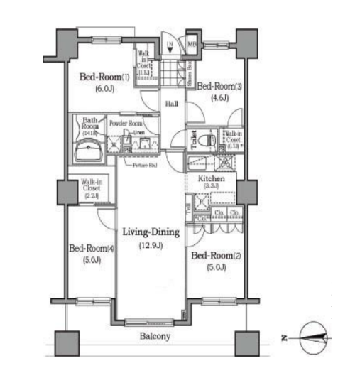 コンシェルジュサービス付きのペット可賃貸マンションです。広々とした4LDKタイプのお部屋になります。